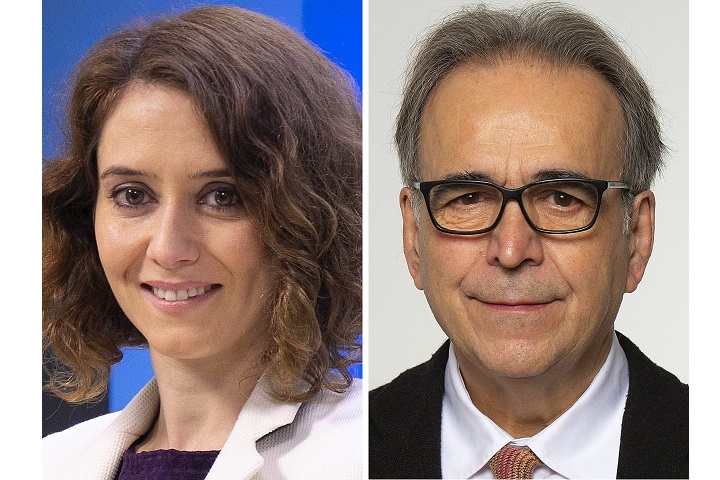Izda.: la presidenta de la Comunidad de Madrid, Isabel Díaz Ayuso, en fotografía del PP. A la dcha.: Joan Subirats, ministro de Universidades, en fotografía de Moncloa.