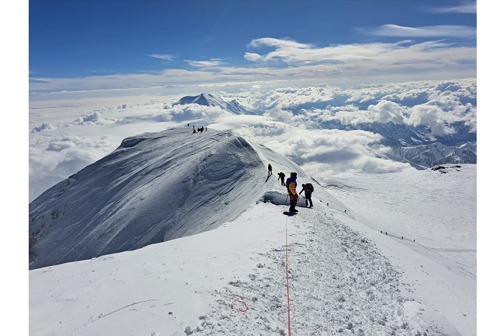 Por nuestra parte, antes de salir de España, contactamos con el experto meteorólogo Jorge Olcina, catedrático de Análisis Geográfico Regional en la Universidad de Alicante, cuyos consejos fueron una parte fundamental de la expedición. Los primeros mensajes que nos enviaba corroboraban lo que ya habíamos deducido de nuestras lecturas antes de partir, que estábamos en una zona del planeta de difícil predicción meteorológica. Al principio, sus mensajes eran algo así como: “Está complicado”. Sin embargo, unos días más tarde, nos anunció que parecía que se acercaba una ventana de buen tiempo, que podría ser de cinco días. Elías, un guía español que vive en Colorado con quien coincidimos en la expedición, nos lo confirmó, aunque añadió que, cuando suben las temperaturas, después de los primeros días, pueden ir acompañadas de grandes nevadas. Con toda esta información, fechamos el 5 de junio como el primero de esos días.