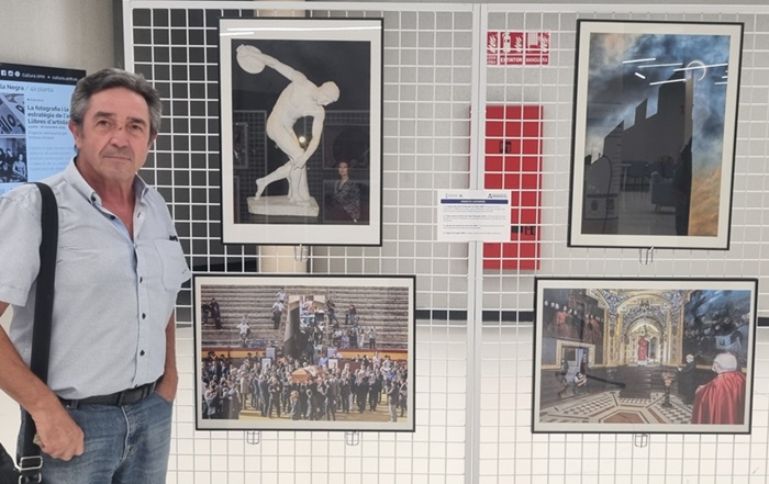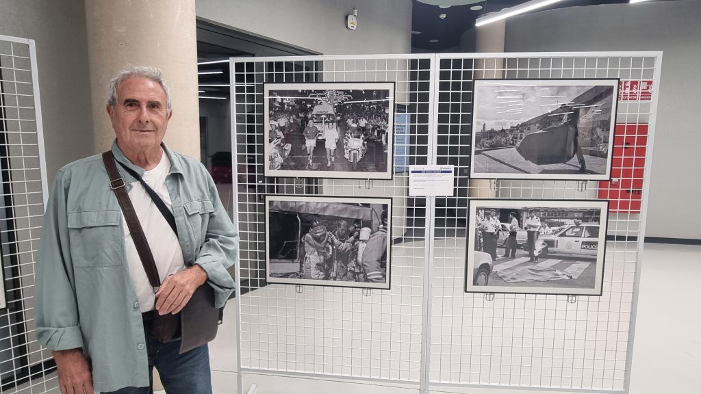 El fotoperiodista Ángel García Catalá posa ante su panel de instantáneas para la exposición «Fotoperiodismo del siglo XXI. Imágenes que hacen historia» (Redacción).