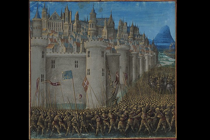 Miniatura de Passages d'outremer de Sébastien Mamerot. Colección: Biblioteca Nacional de Francia (Fuente: Wikimedia).