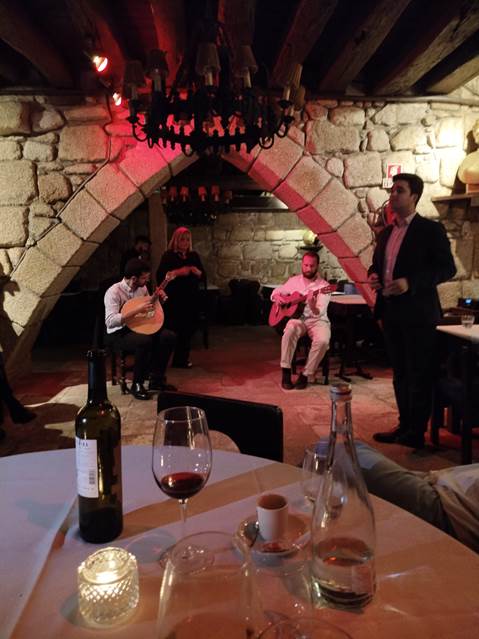 El ambiente era íntimo y cálido, con la luz tenue iluminando las mesas y un silencio expectante que nos solicitaba Nino, un camarero muy particular que presagiaba algo único. Mientras degustábamos la exquisita gastronomía típica de Oporto, comenzó a sonar la guitarra portuguesa, inconfundible en su dulzura y melancolía. No una, sino dos guitarras, se entrelazaban en armonía mientras una mujer y un hombre fadistas se alternaban para deleitarnos. Sus voces, profundas y cargadas de sentimiento, nos envolvieron con esa saudade tan propia del fado, transmitiendo nostalgia, amor y una emoción difícil de describir con palabras.